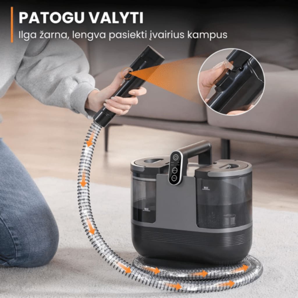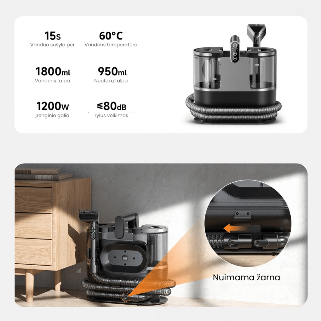 The tyfoon™ Deep Clean Wet-Dry Vacuum Cleaner tackles embedded dirt with 115 AW suction and heats fresh water in just 15 seconds. Its dual-tank system (1.8 L fresh, 0.95 L dirty) keeps clean and dirty water separate, while four interchangeable nozzles adapt to every surface. Compact at 4.2 kg and splash-resistant (IPX4), it delivers powerful cleaning without harsh chemicals.